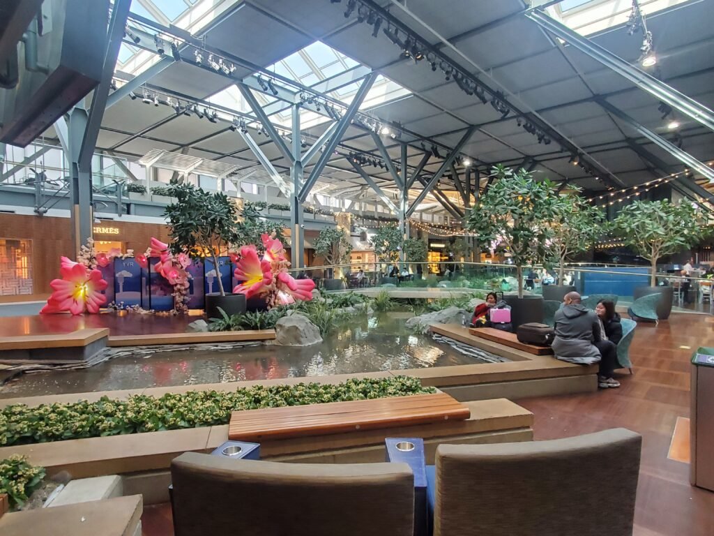 We had a layover in Vancouver Airport for about four hours. We first saw the awe-inspiring mountains in the distance when we landed. After deplaning, there was a gorgeous main lobby area with a pond, greenery, and a little bridge that we explored for a bit. From here we headed to immigration. Luckily that didn’t take too long, so we had around three hours to kill before boarding. We spent that time rewatching Rogue One in preparation for Andor Season 2, which would be coming out about a week from then.