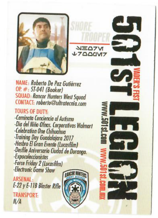 However, one of the best parts of our flight was meeting a Mexican man seated right across the aisle from Carlos named Roberto De Paz Gutiérrez. He turned out to be part of the 501st Legion, a global fan organization dedicated to creating screen-accurate costumes of Imperial characters from Star Wars – most famously stormtroopers, but also Darth Vader, Royal Guards, and more. They’re officially recognized by Lucasfilm and often volunteer at charity events and conventions.