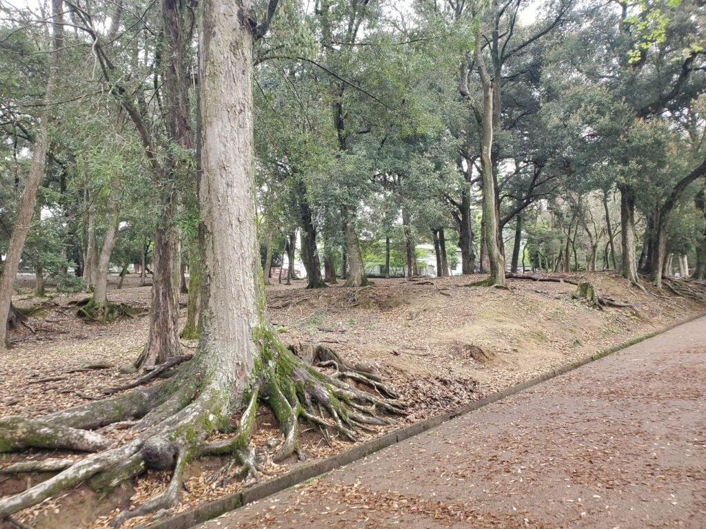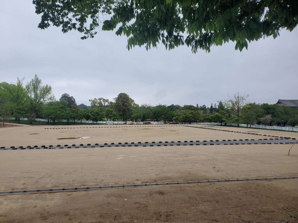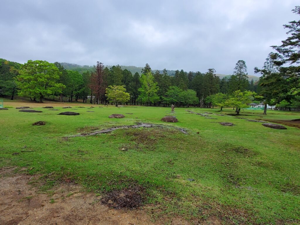 Continuing into a more open area, I noticed another set of ruins. These were the remains of the lecture hall and monk’s dormitory of Tōdai-ji. Monks studied Buddhist doctrines in the former, while the latter housed those who trained at the temple. Excavations have revealed their foundations, and there are plans to partially reconstruct them in the future.