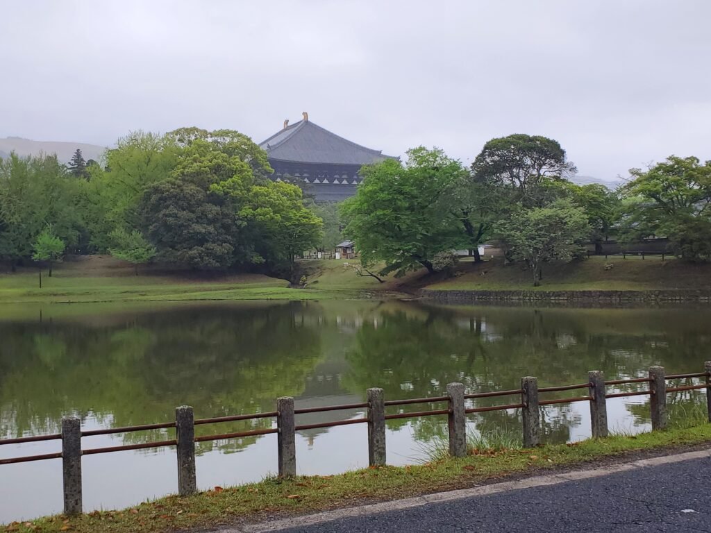 From there I walked past a pond, which offered a wonderful reflection of Tōdai-ji and the surrounding trees on the water’s surface – even with the light rain.
