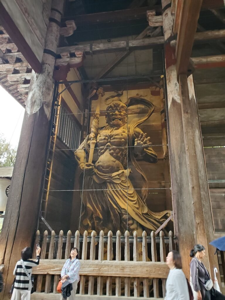 After that I started making my way back, passing once again by the South Gate, where I paused to admire the massive wooden guardian statues. I didn’t go inside Tōdai-ji itself – it was crowded with tourists, and the entry fee seemed a bit steep – but I still felt like I had gotten a rich sense of the temple complex. Meanwhile, Carlos joyfully told the tale of a man who had lit a cigarette right underneath the no smoking sign!
