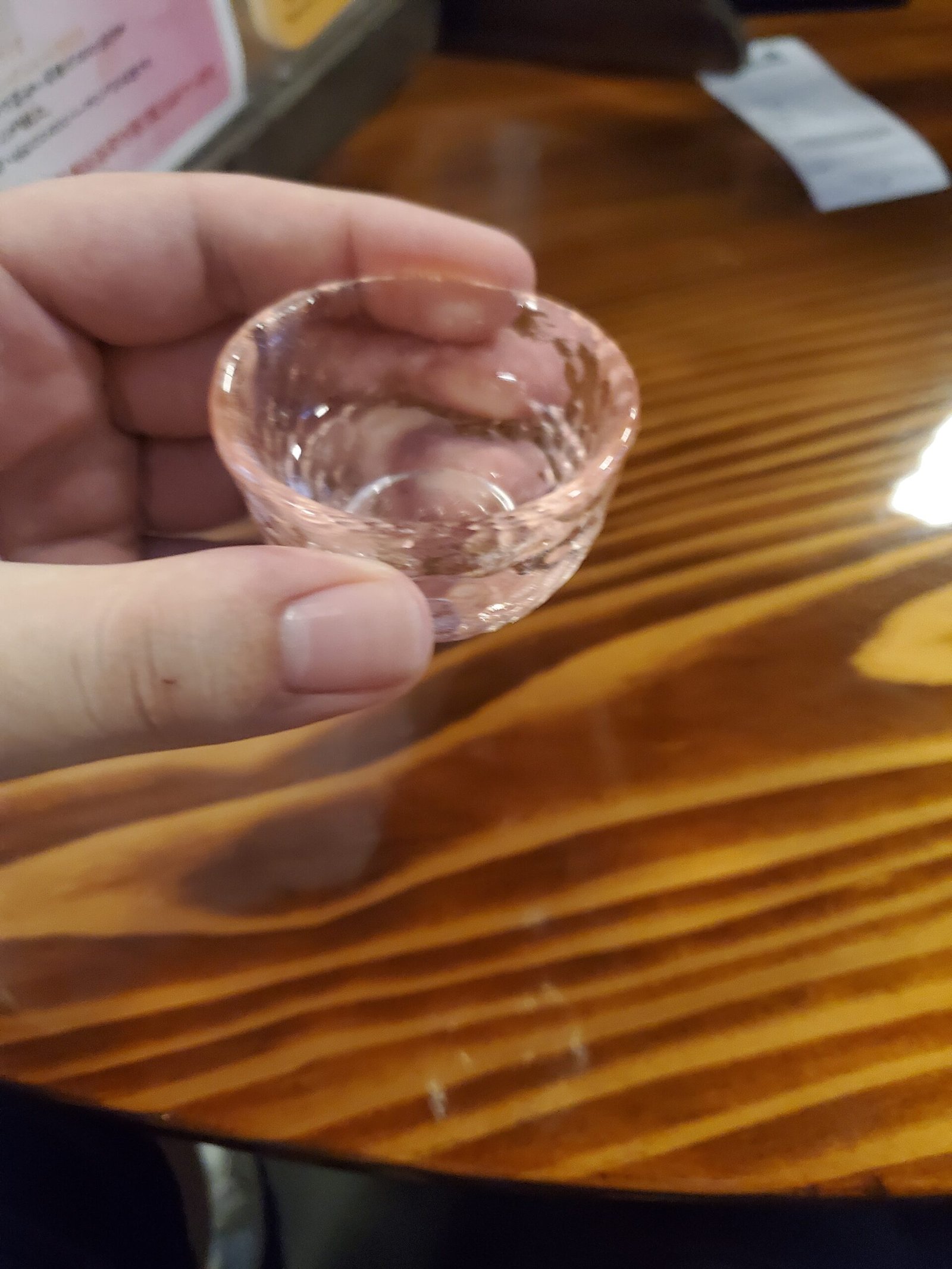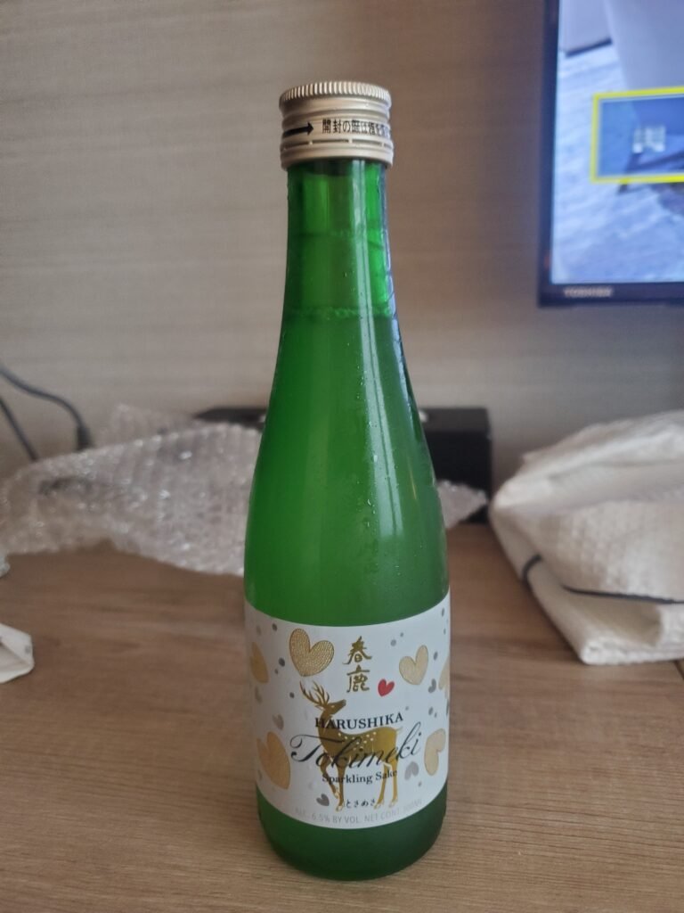 Most of the samples were a bit strong for our tastes, but the real surprise was that we each found one we genuinely liked! Carlos preferred the fourth variety, while I fell in love with the fifth: Harushika Tokimeki Sparkling Sake. I didn’t even know sparkling sake existed, but it was light, refreshing, and much lower in alcohol content than the others – just 6.5% compared to 15% or higher in the traditional ones. Carlos bought a bottle of his favorite, while I picked up two of mine.