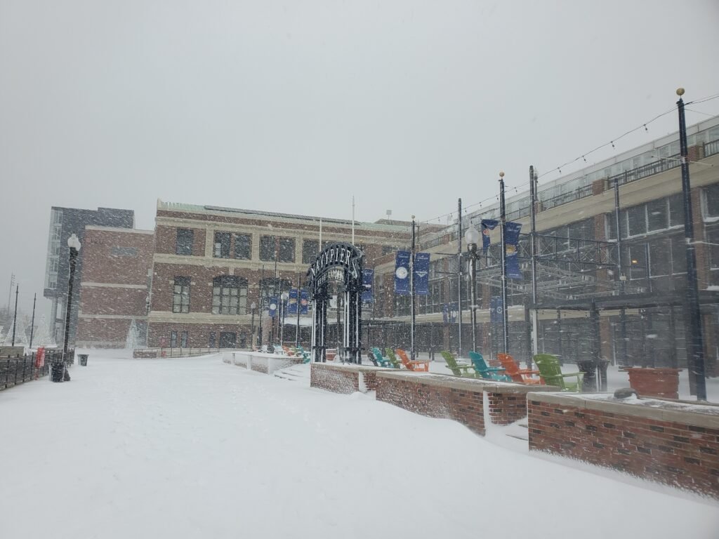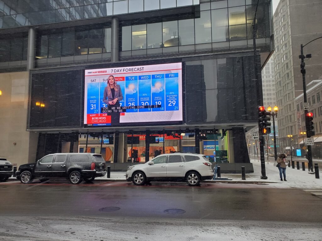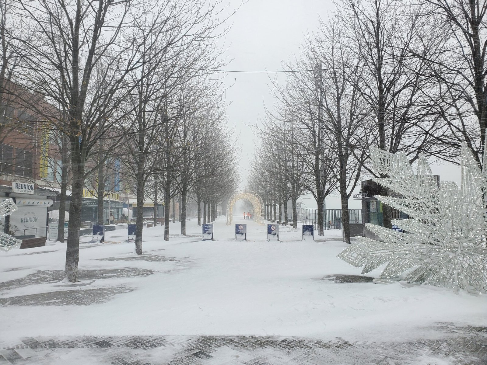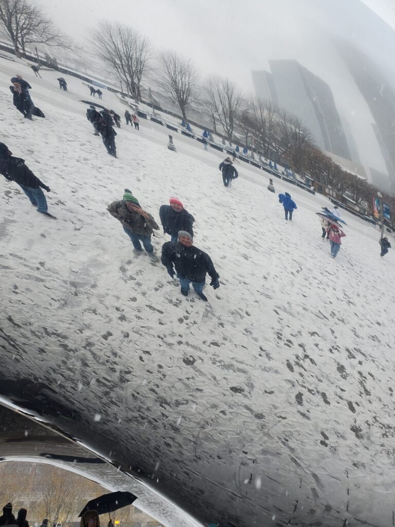 As such, our first goal was getting to the Bean, but this would mean we’d have to walk about a mile straight east. So we set off through the snow, hoping to find somewhere along the way like a coffee shop we could stay at for a little while.