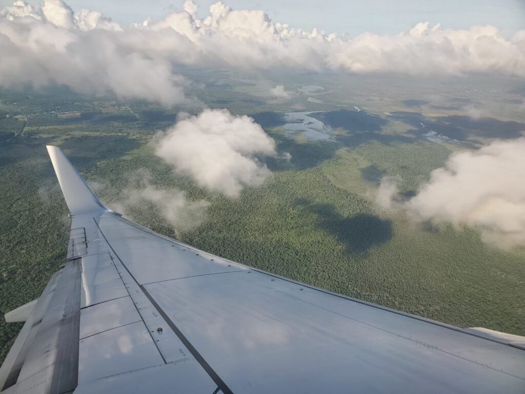 We just ended up leaving around 20 minutes late, around 12:40. The flight to Belize City was about the same as the first flight, clocking in at around 3 hours. As we got close to landing you could really see the unique contrast of Belize’s terrain – tons of islands in the distance versus the swaths of jungle beneath us.