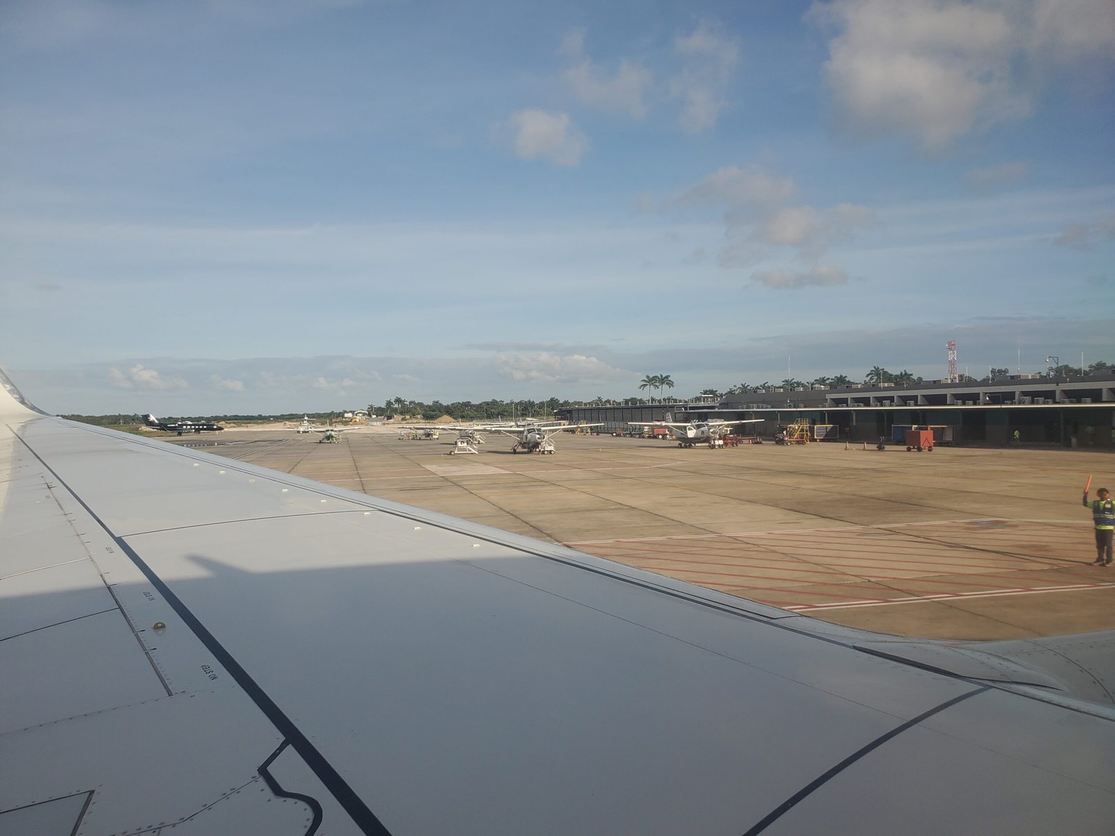 We landed around 3:40 local time, and it was probably one of the roughest runways I’ve ever landed on. The funny part? At the end of the strip, we did a U-turn! Philip S.W. Goldson International Airport (BZE) is pretty small, and is the only international airport in Belize, so there’s only the main runway. Most flights are to local areas, primarily the islands like Caye Caulker and Ambergris Caye, as these are major tourist spots. Caye Caulker would be the island we’d end up staying at, though we opted out of flying there. It was a bit pricier than we would have preferred, and we also wanted to take the water taxis to get a more local experience.